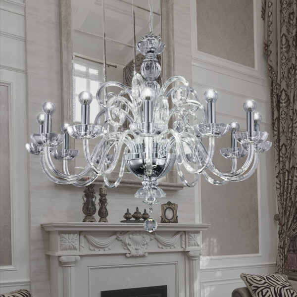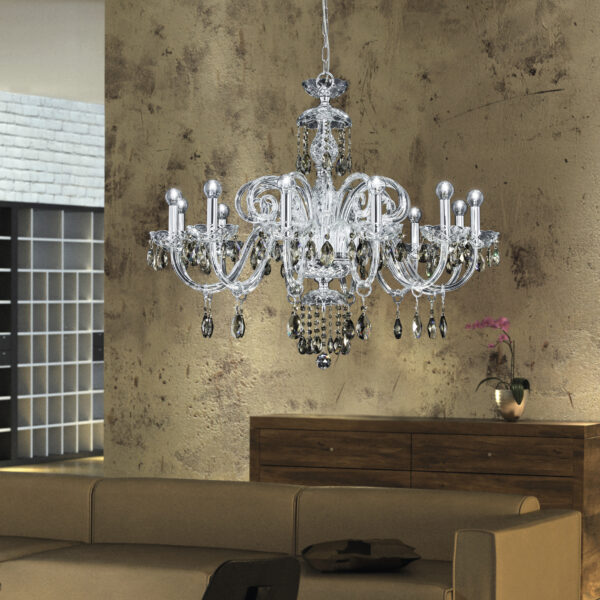 Iokasti 106/CH 12 χρώμιο-κρυστάλλινος πολυέλαιος