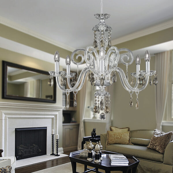 Kassandra 101/CH 6 φύλλο ασήμι-κρυστάλλινος πολυέλαιος