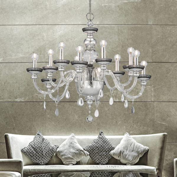 Juliana 108/CH 12 φύλλο ασήμι-graphite-κρυστάλλινος πολυέλαιος