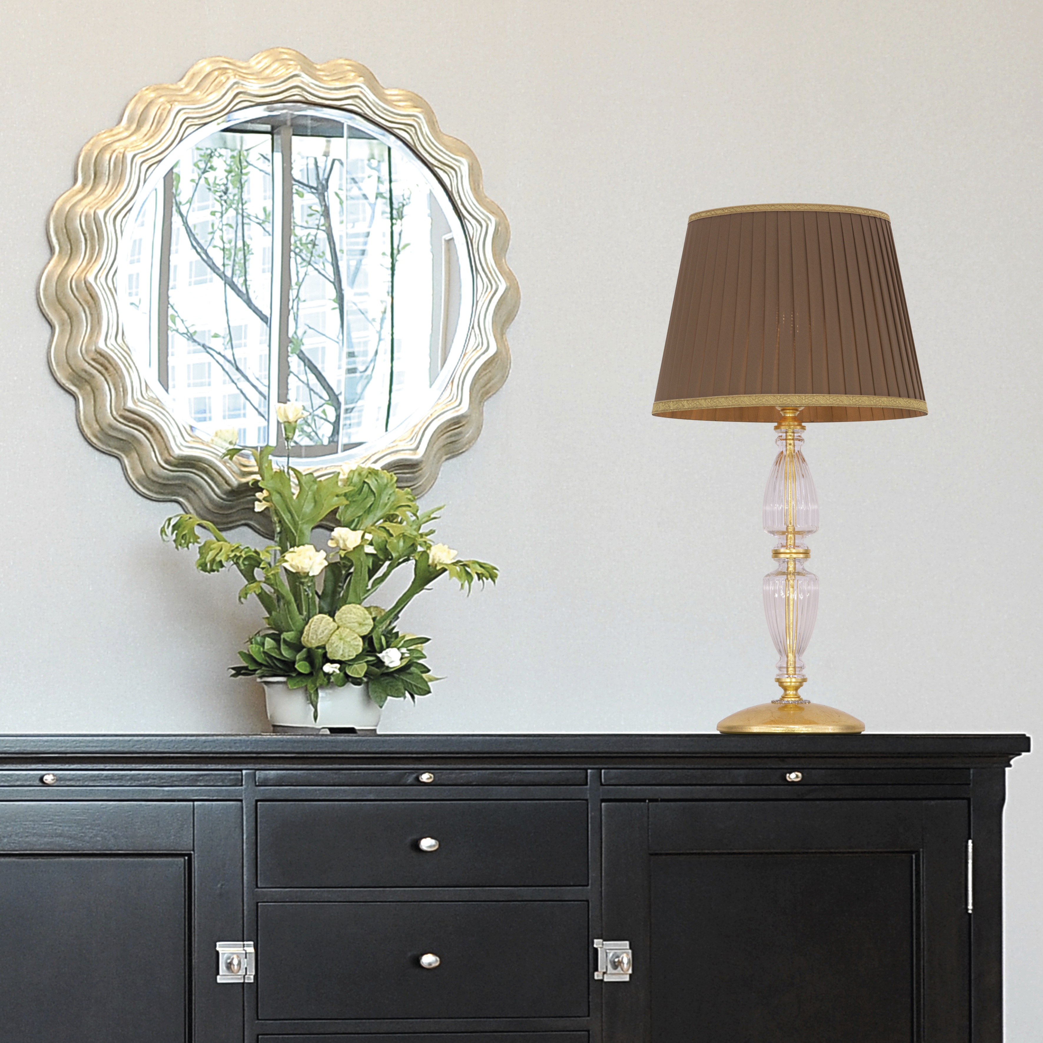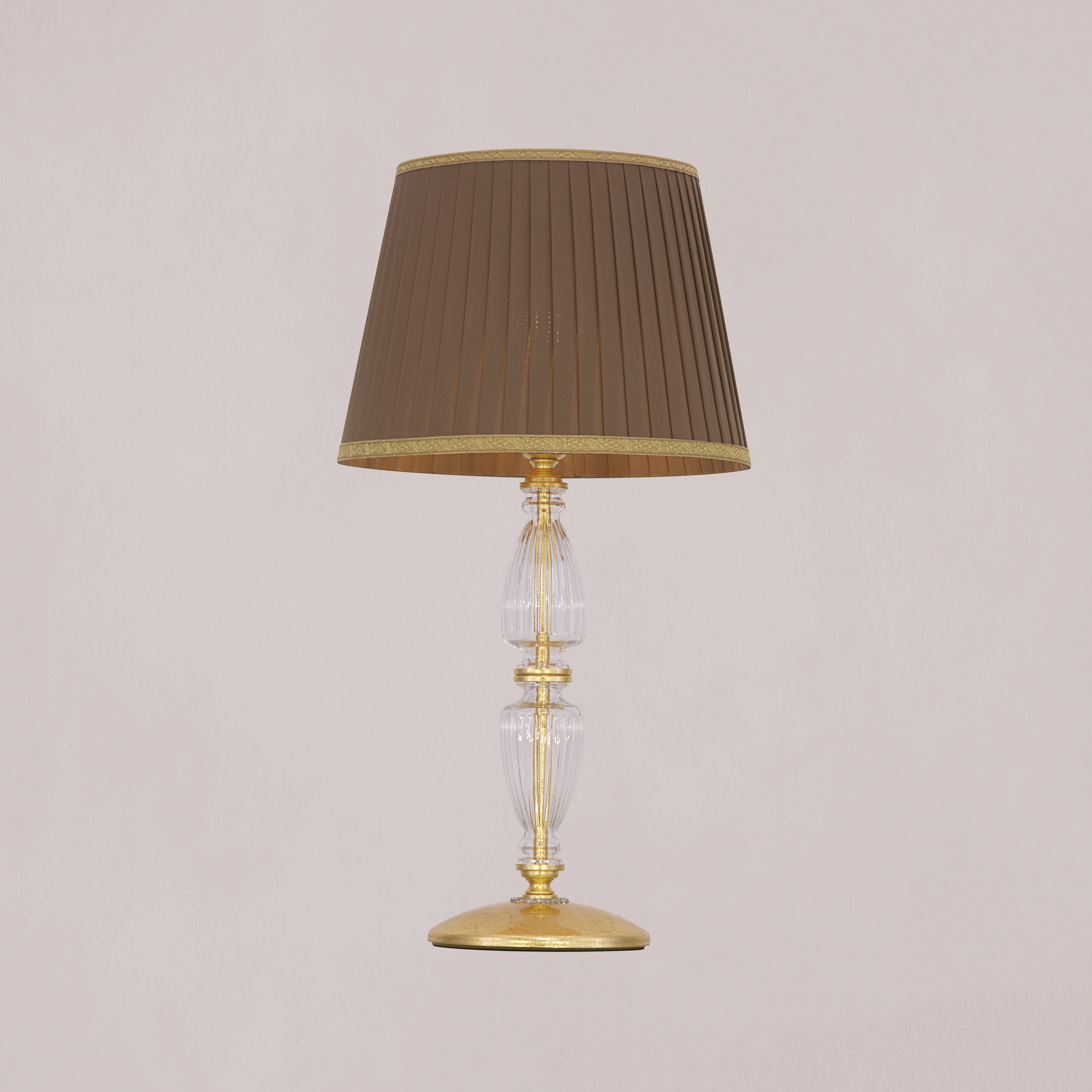 Kassandra 101/LG φύλλο χρυσού-κρυστάλλινο επιτραπέζιο φωτιστικό-λαμπατέρ-fabric mocha αμπαζούρ