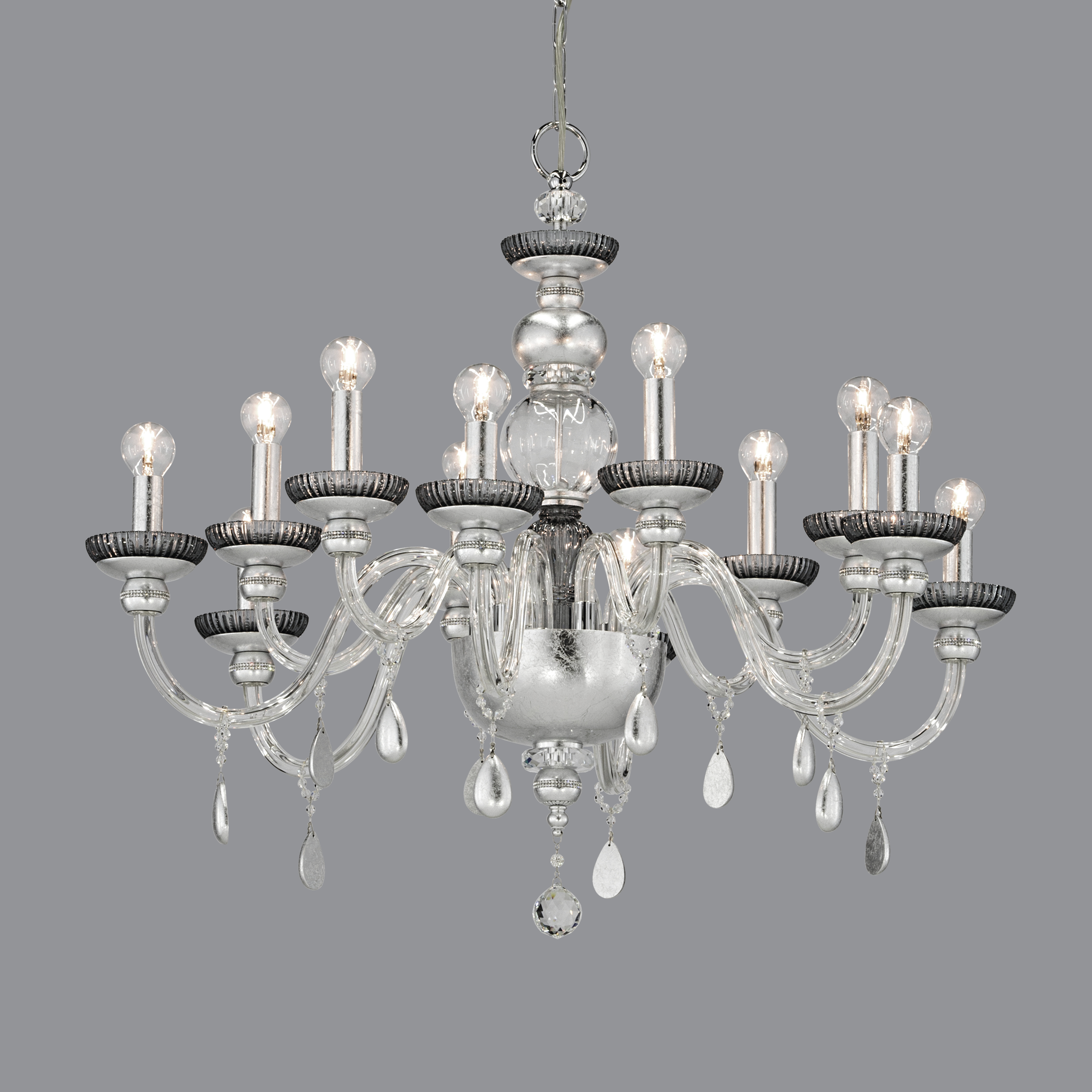 Juliana 108/CH 12 φύλλο ασήμι-graphite-κρυστάλλινος πολυέλαιος