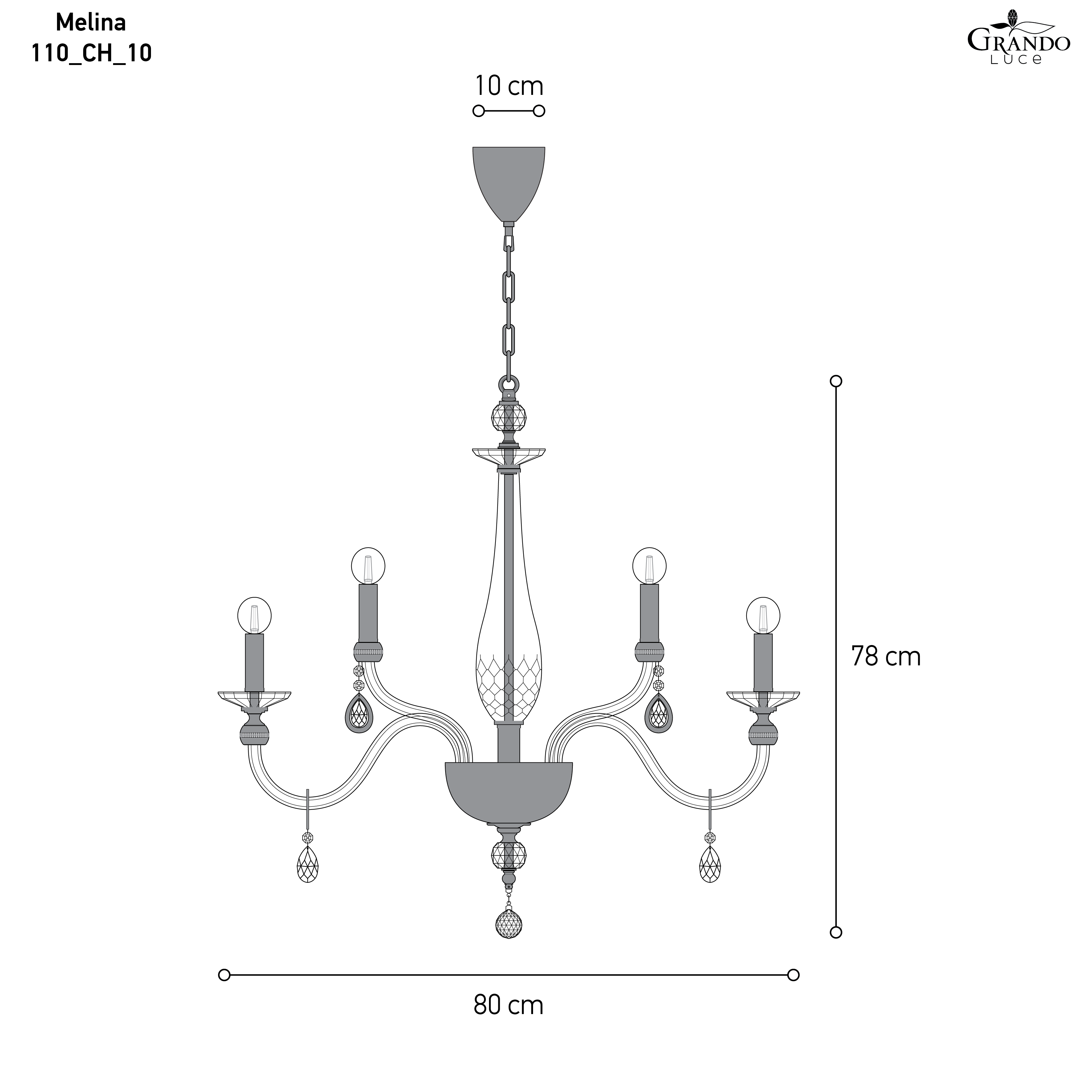 110/CH 10 | Φωτιστικό Οροφής - Πολυέλαιος | Ø.80 cm _H.78 cm | 10 x 6W • E14 |
