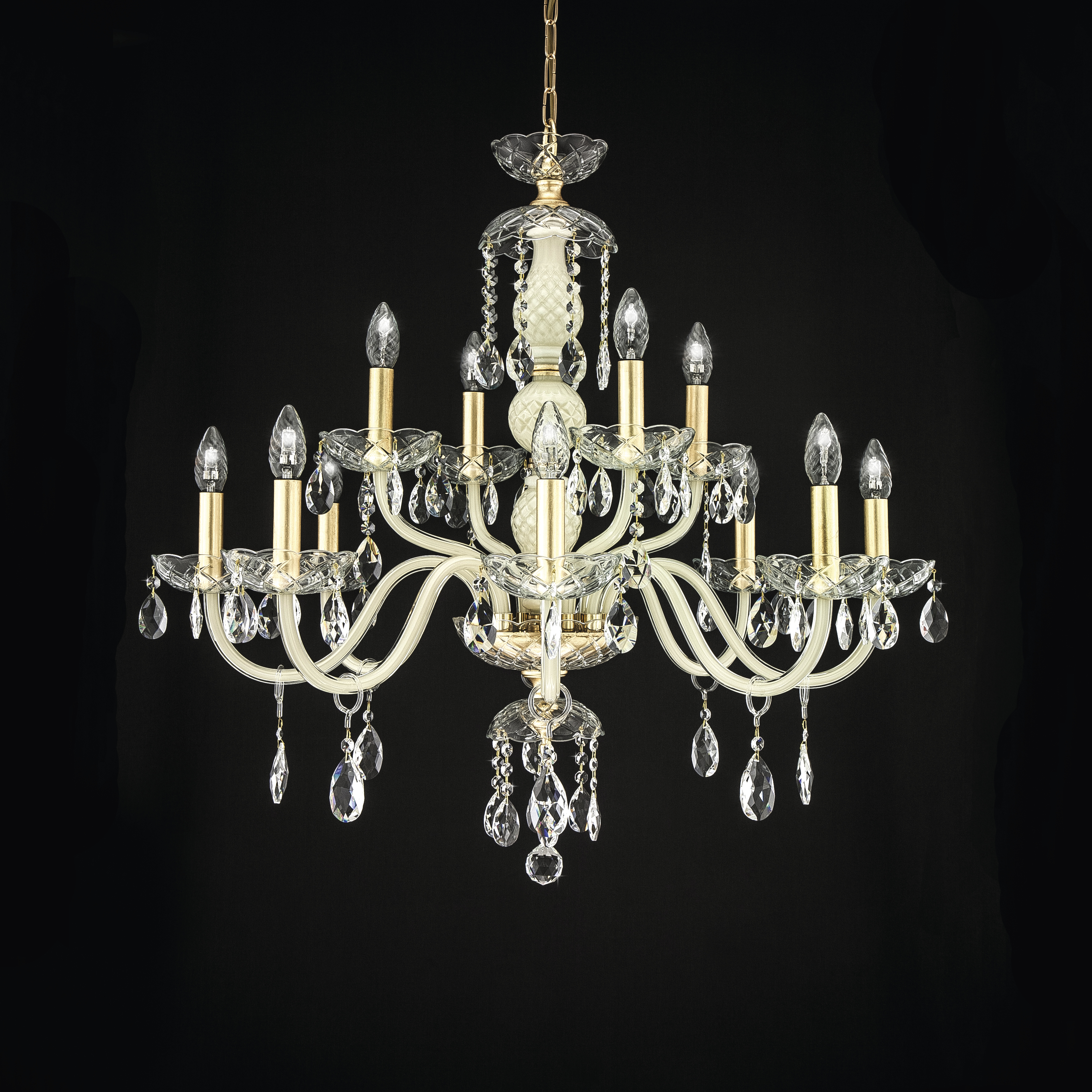 Olympia 104/CH 12 φύλλο χρυσού-ιβουάρ-κρυστάλλινος πολυέλαιος