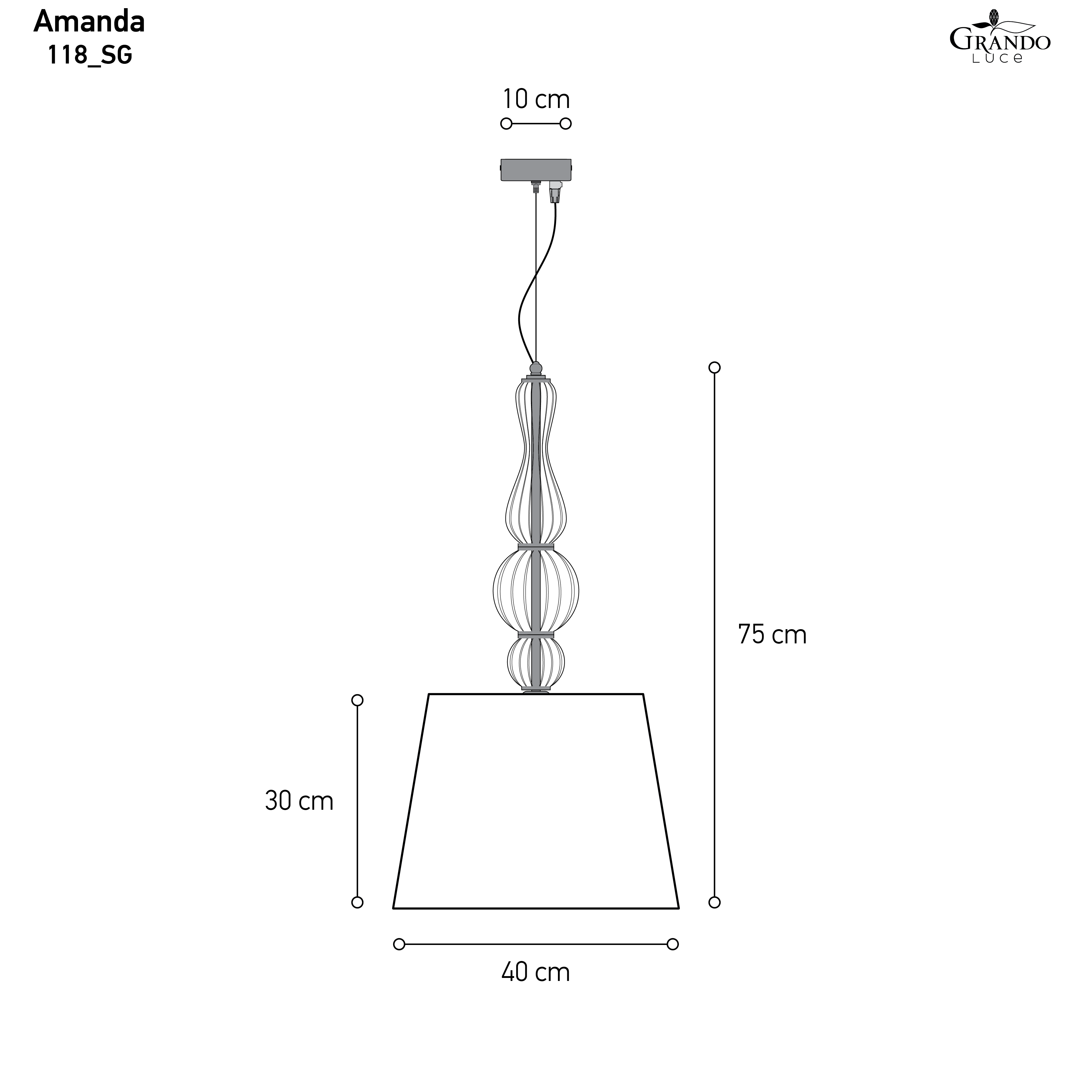 118/SG | Φωτιστικό Οροφής - Κρεμαστό | Ø.40 cm_H.75 cm | 1 x 10W • E27 |