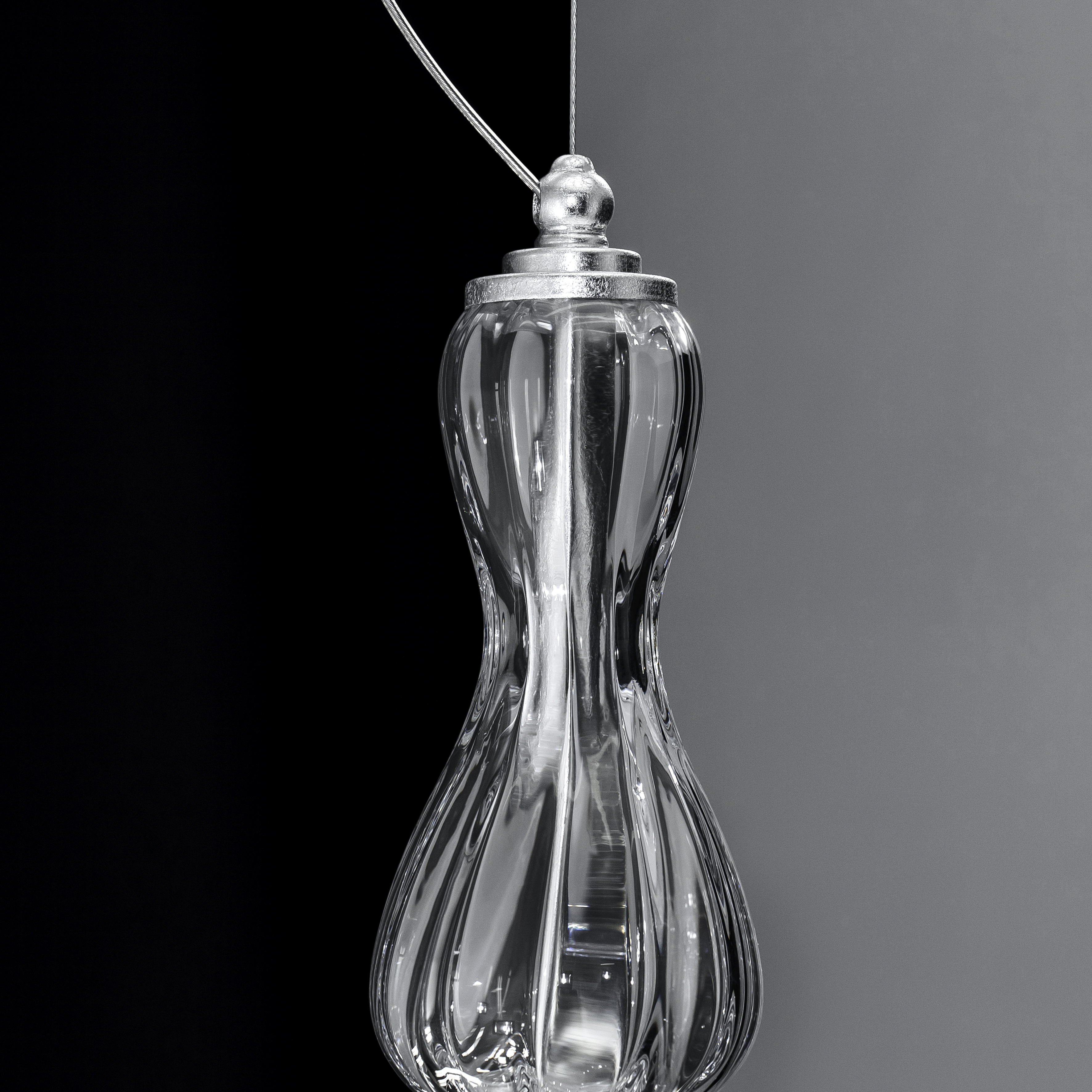 Amanda 118/SM φύλλο ασήμι-κρυστάλλινο κρεμαστό φωτιστικό-pvc black chrome shade