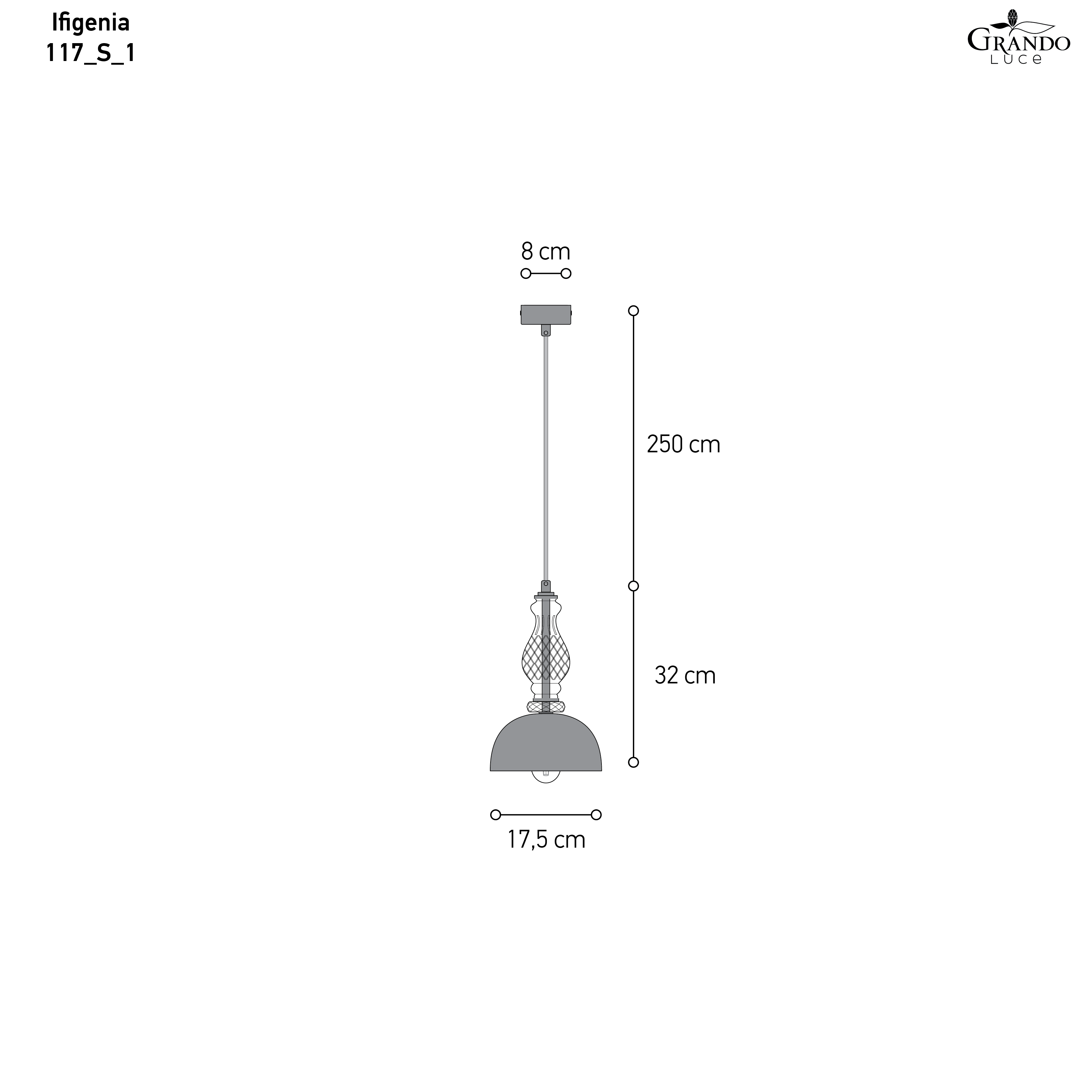 117/S 1 | Φωτιστικό Οροφής - Κρεμαστό | Ø.17,5 cm _H.250 cm | 1 x 6W • E14 |