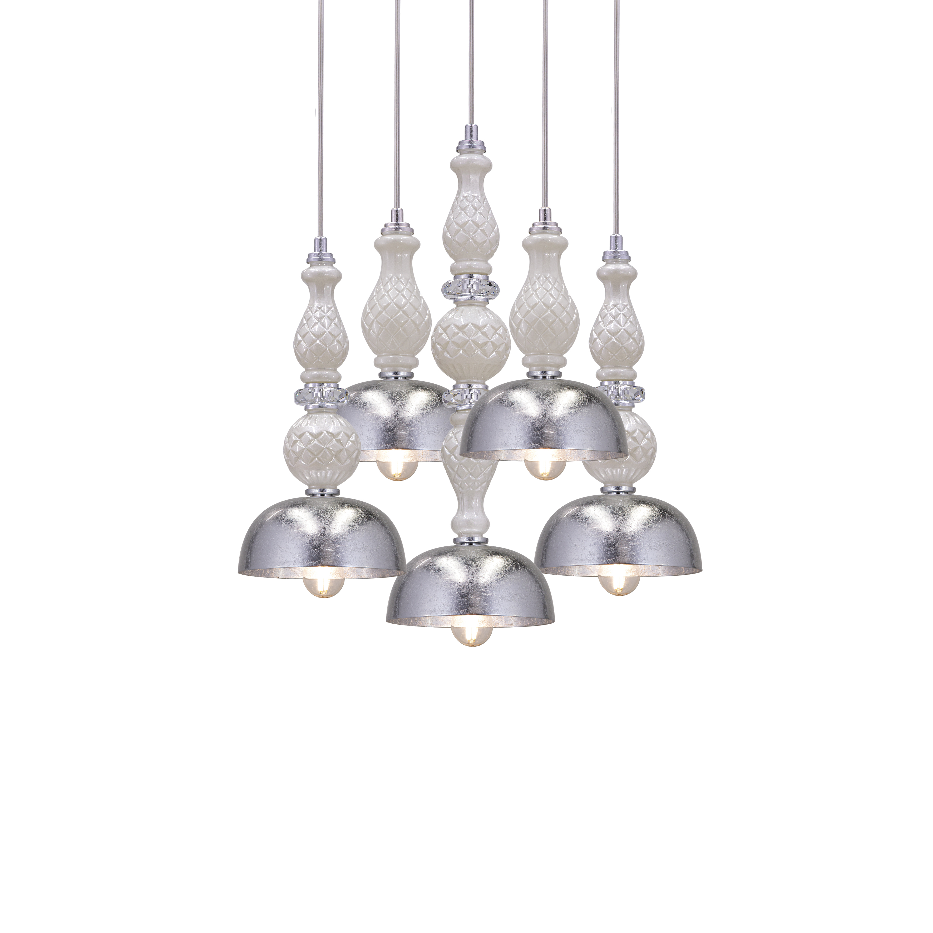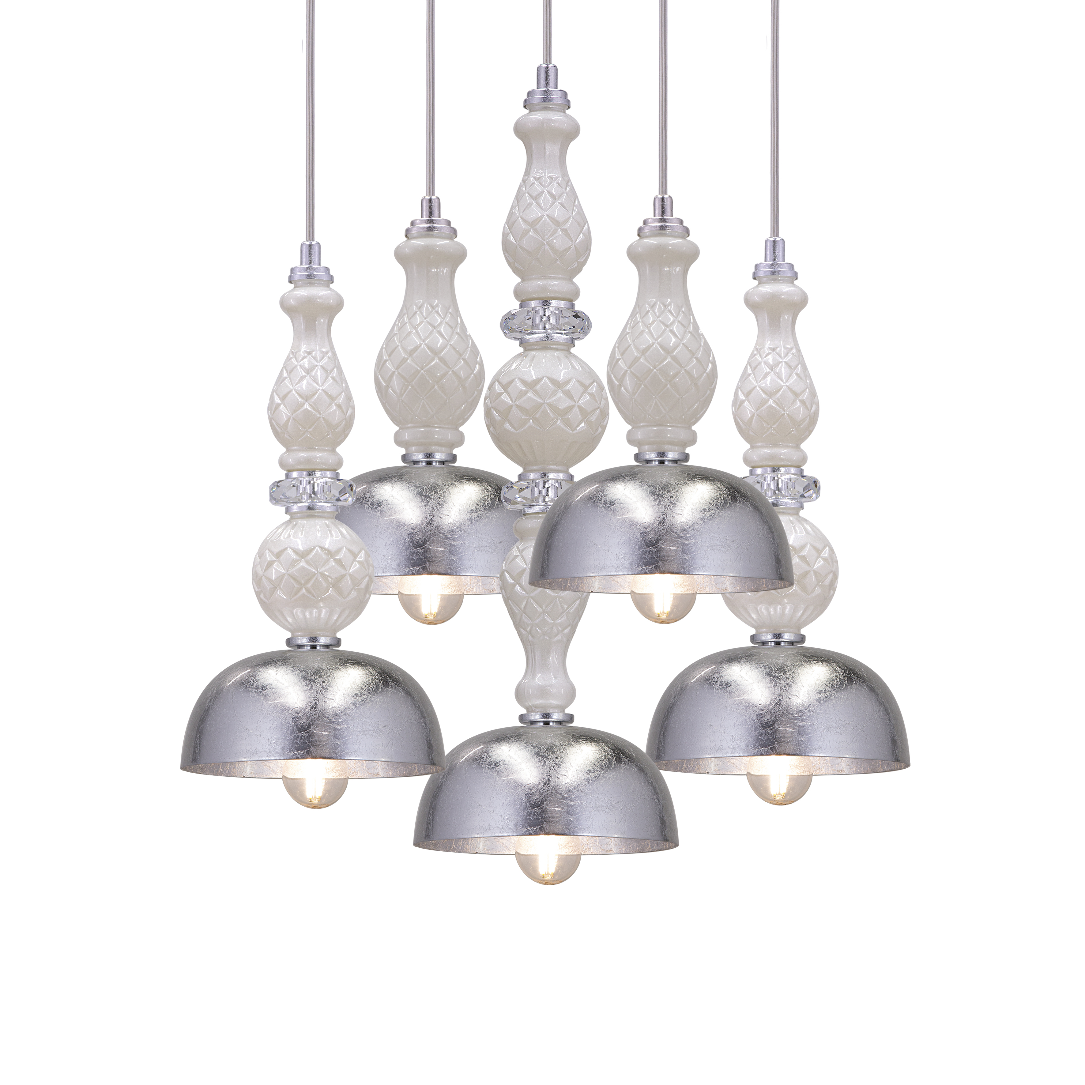 Ifigenia 117/SPL 5 φύλλο ασήμι-πέρλα φωτιστικό οροφής κρεμαστό
