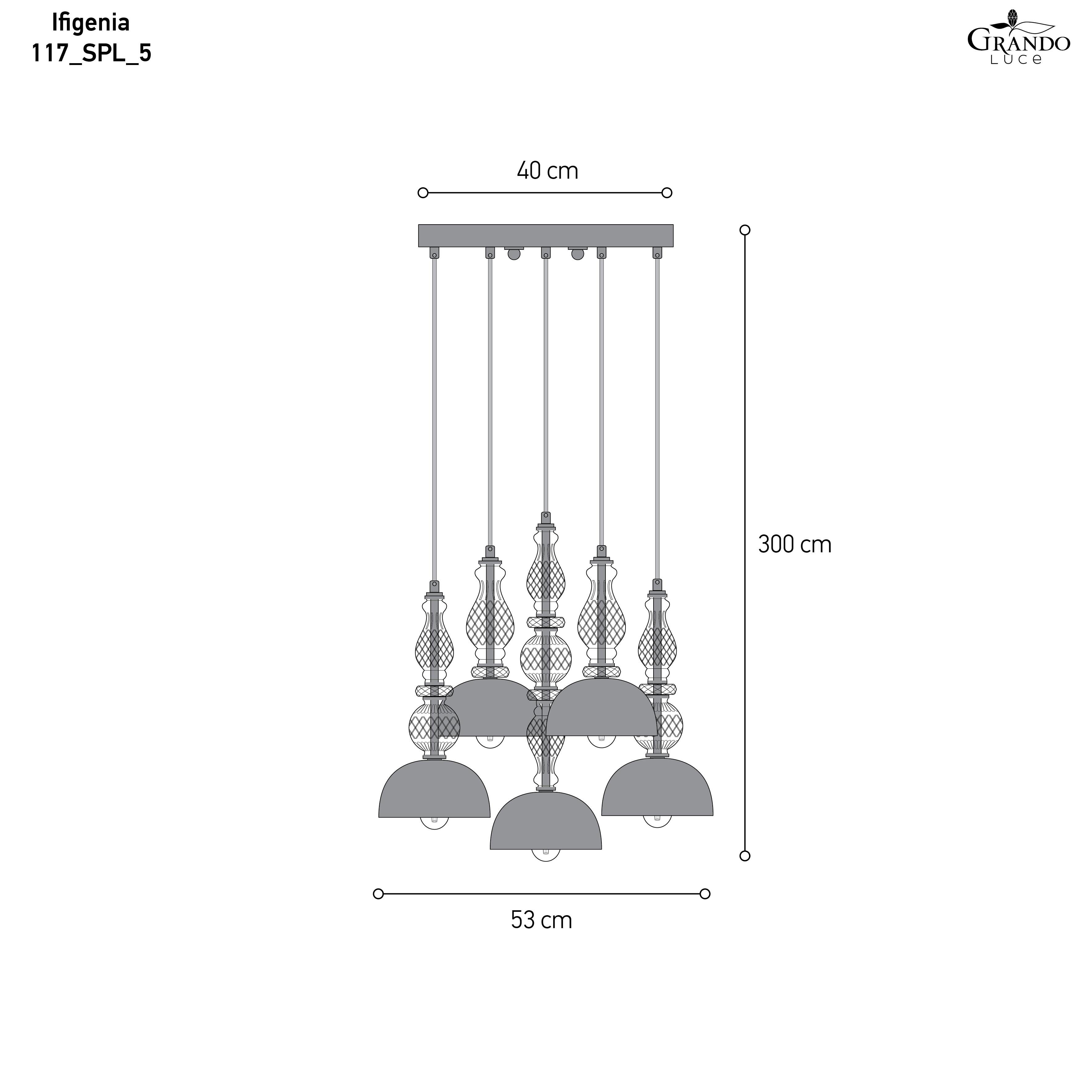 117/SPL 5 | Φωτιστικό Οροφής - Κρεμαστό | Ø.53 cm_H.300 cm | 5 x 6W • E14 |
