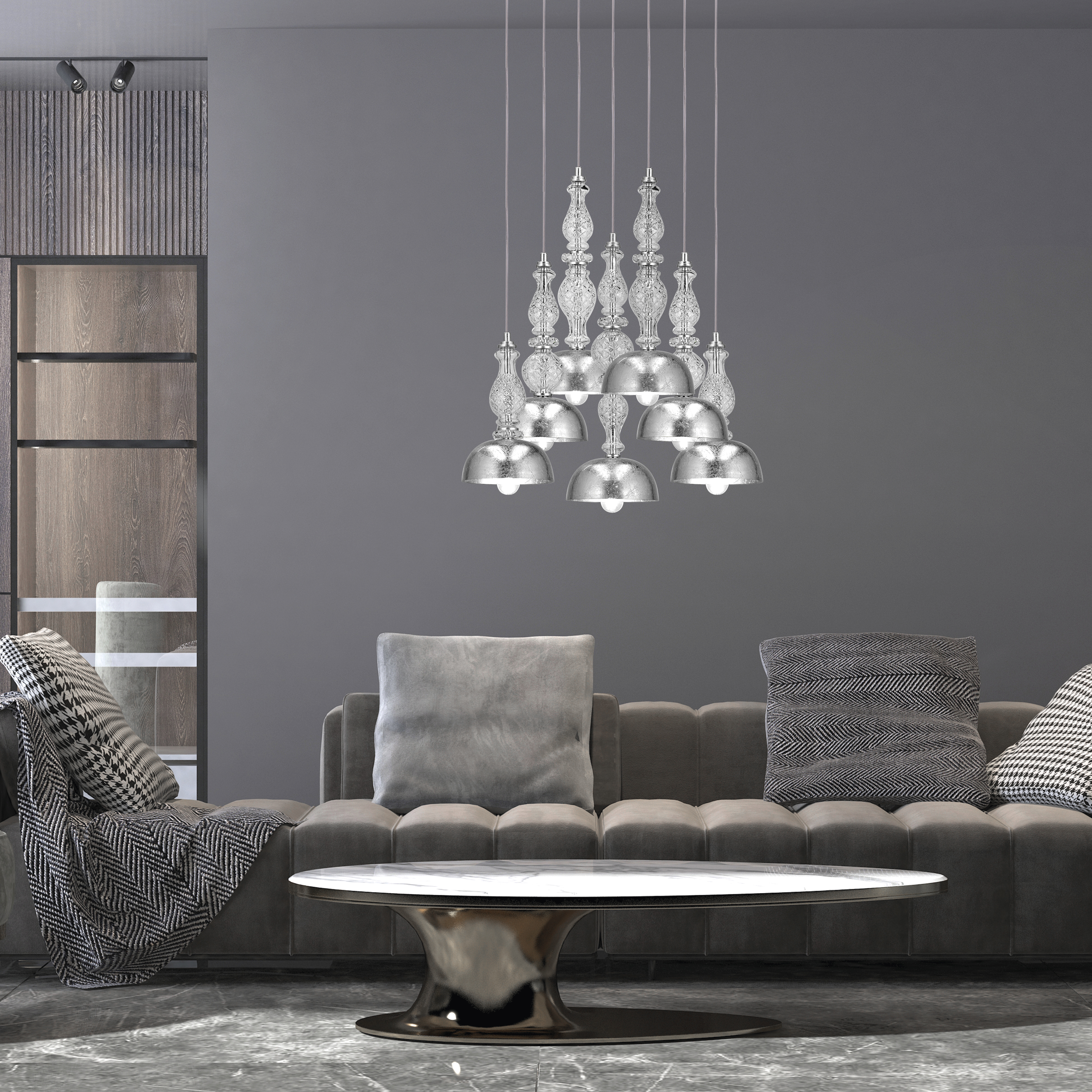 Ifigenia 117/SPL 7 φύλλο ασήμι-διάφανο φωτιστικό οροφής κρεμαστό