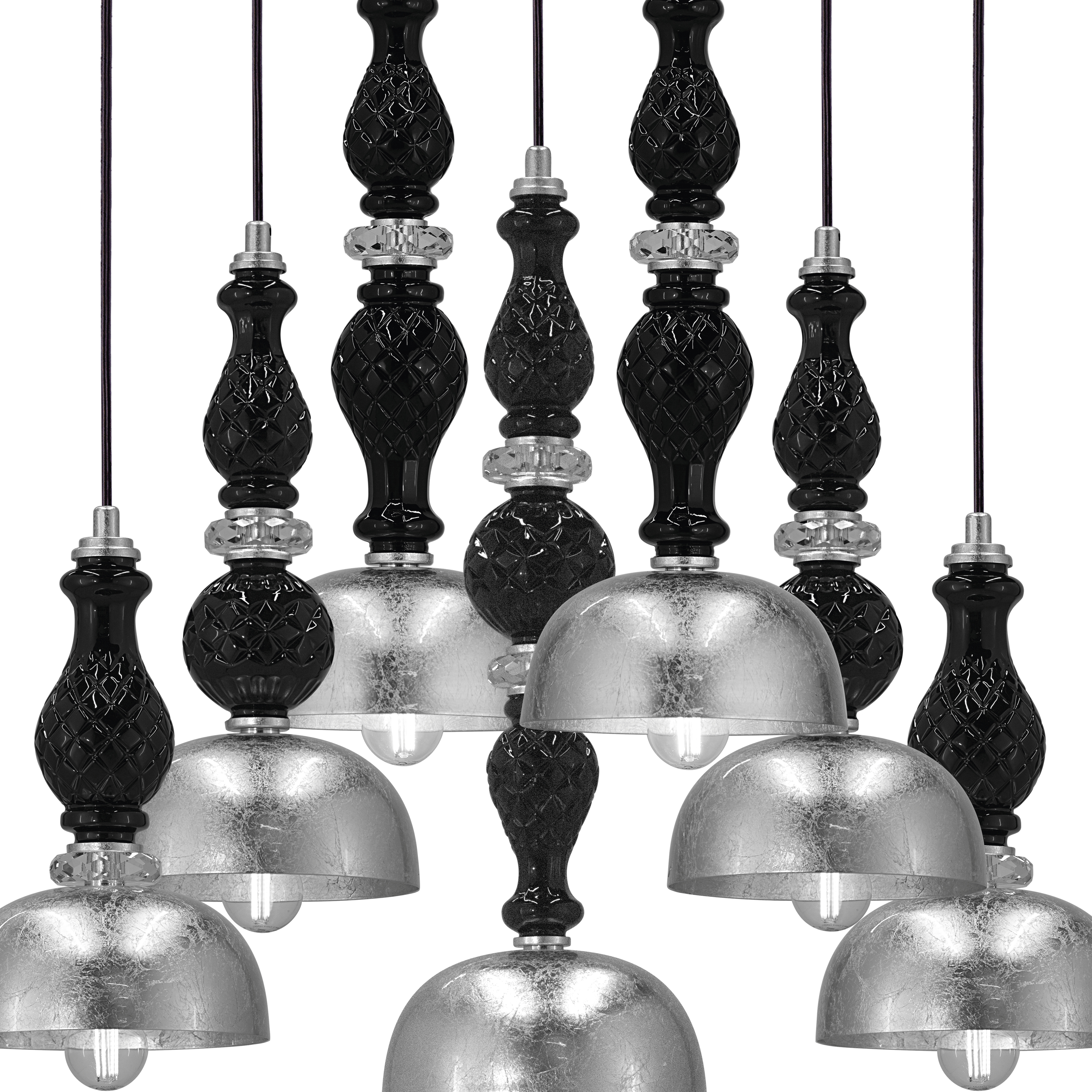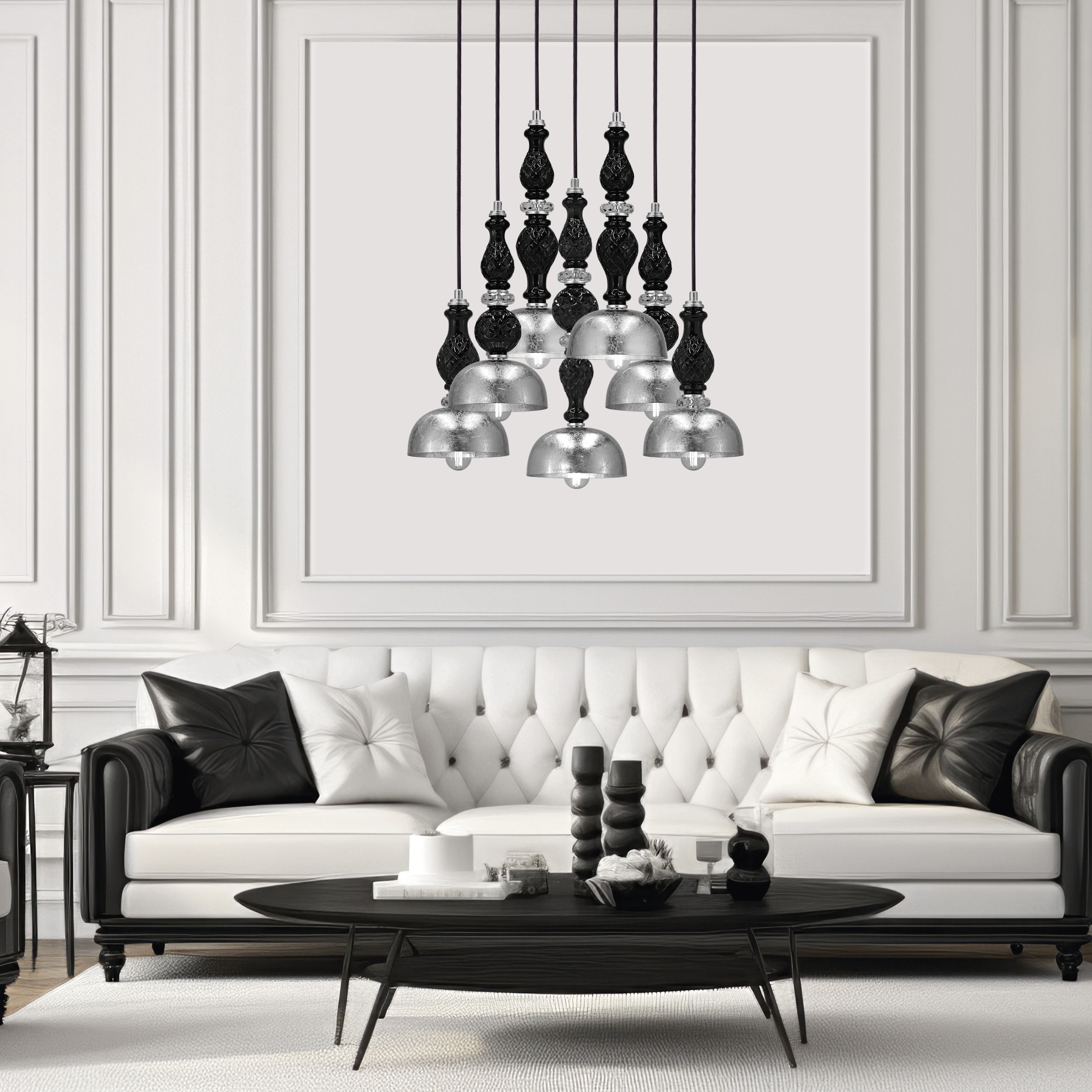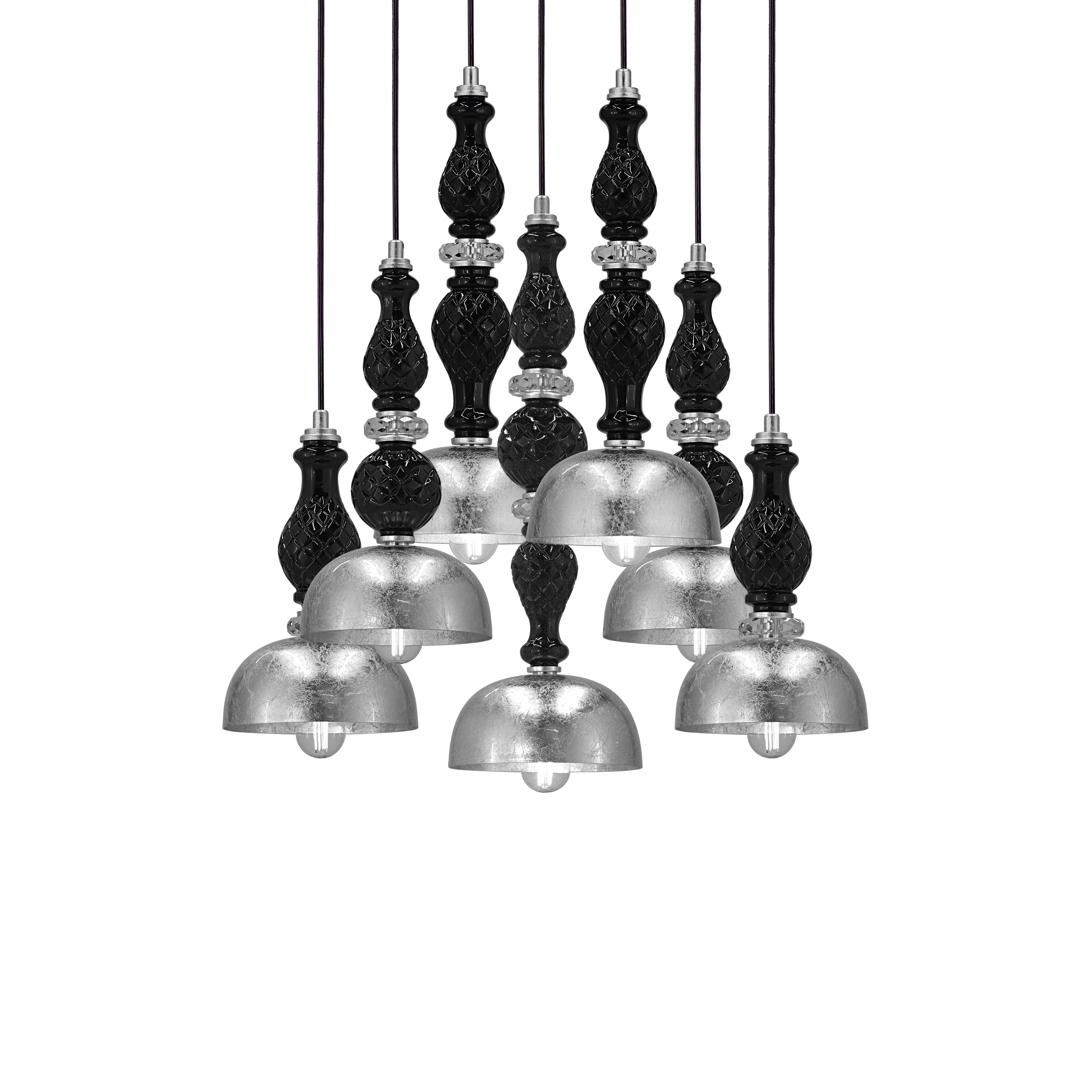 Ifigenia 117/SPL 7 φύλλο ασήμι-μαύρο φωτιστικό οροφής κρεμαστό