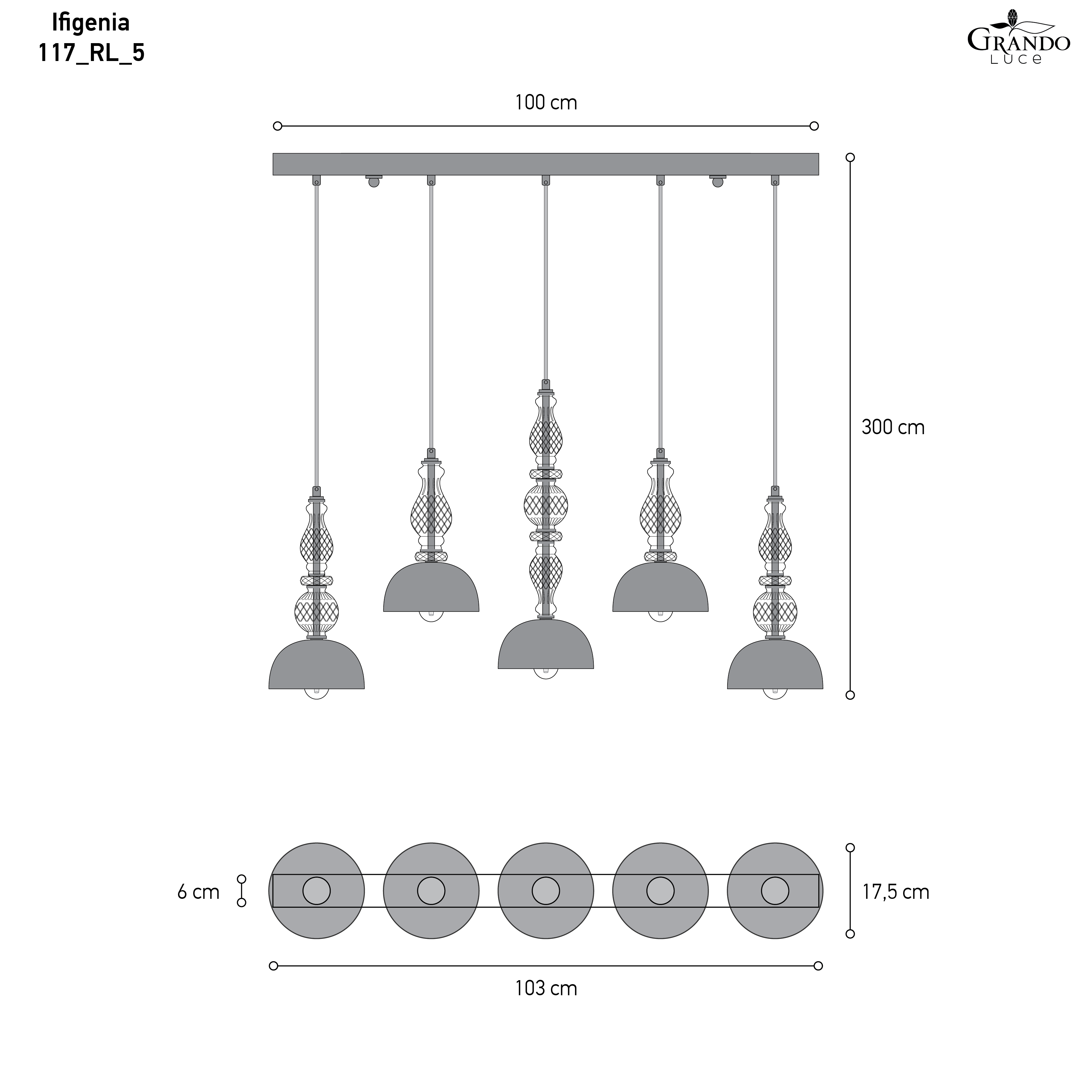 117/RL 5 | Φωτιστικό Οροφής - Γραμμικό Κρεμαστό | L.103 cm_SP.17,5 cm | 5 x 6W • E14 |