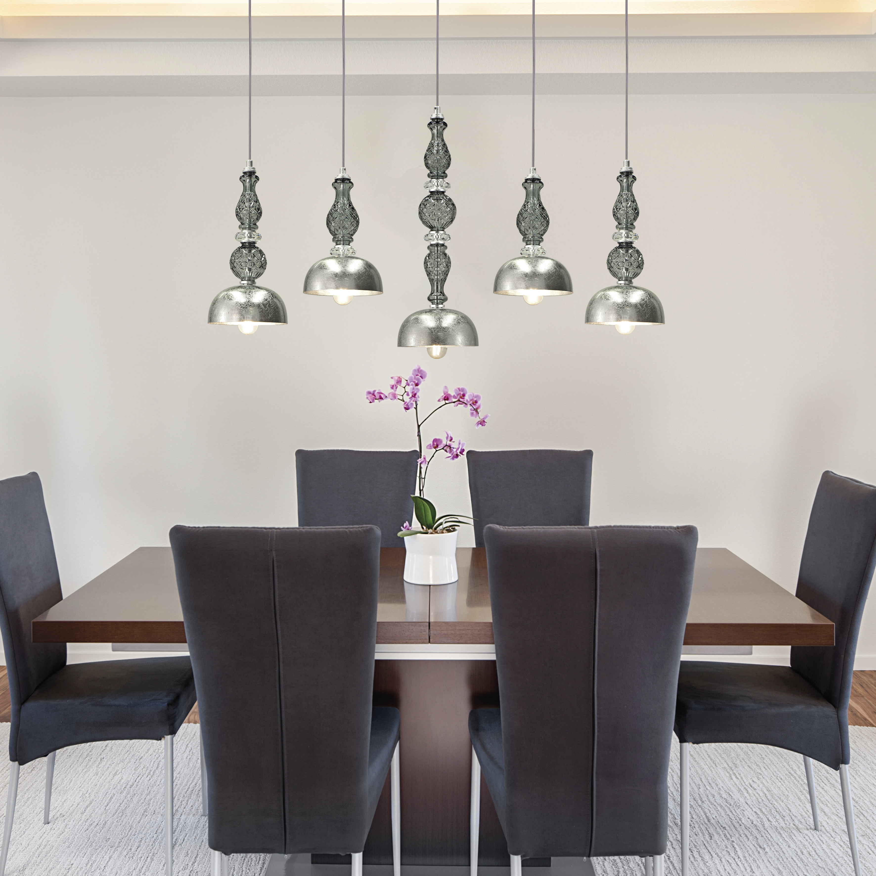 Ifigenia 117/RL 5 φύλλο ασήμι-γραφίτη φωτιστικό οροφής κρεμαστό γραμμικό