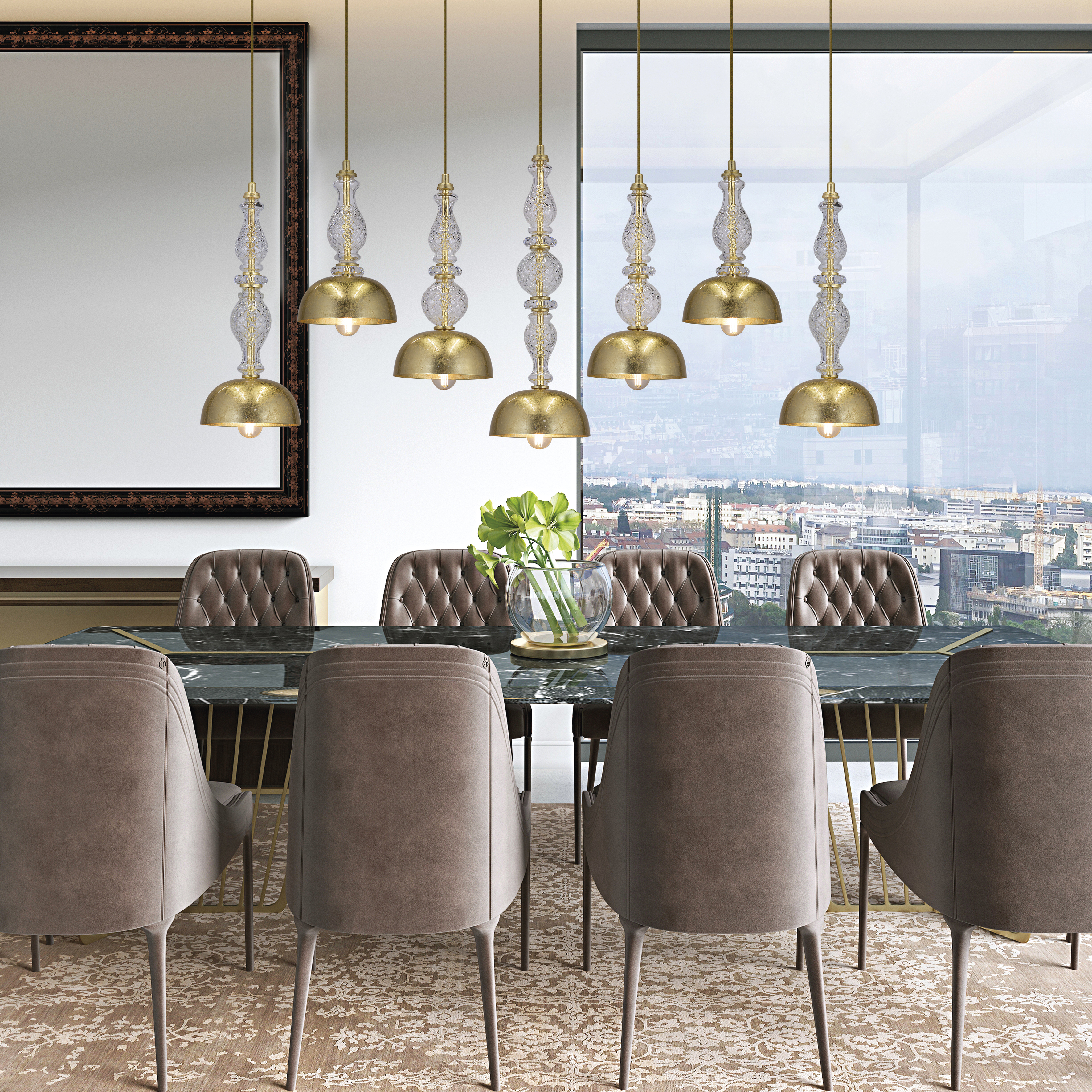 Ifigenia 117/RL 7 φύλλο χρυσού-διάφανο φωτιστικό οροφής κρεμαστό γραμμικό
