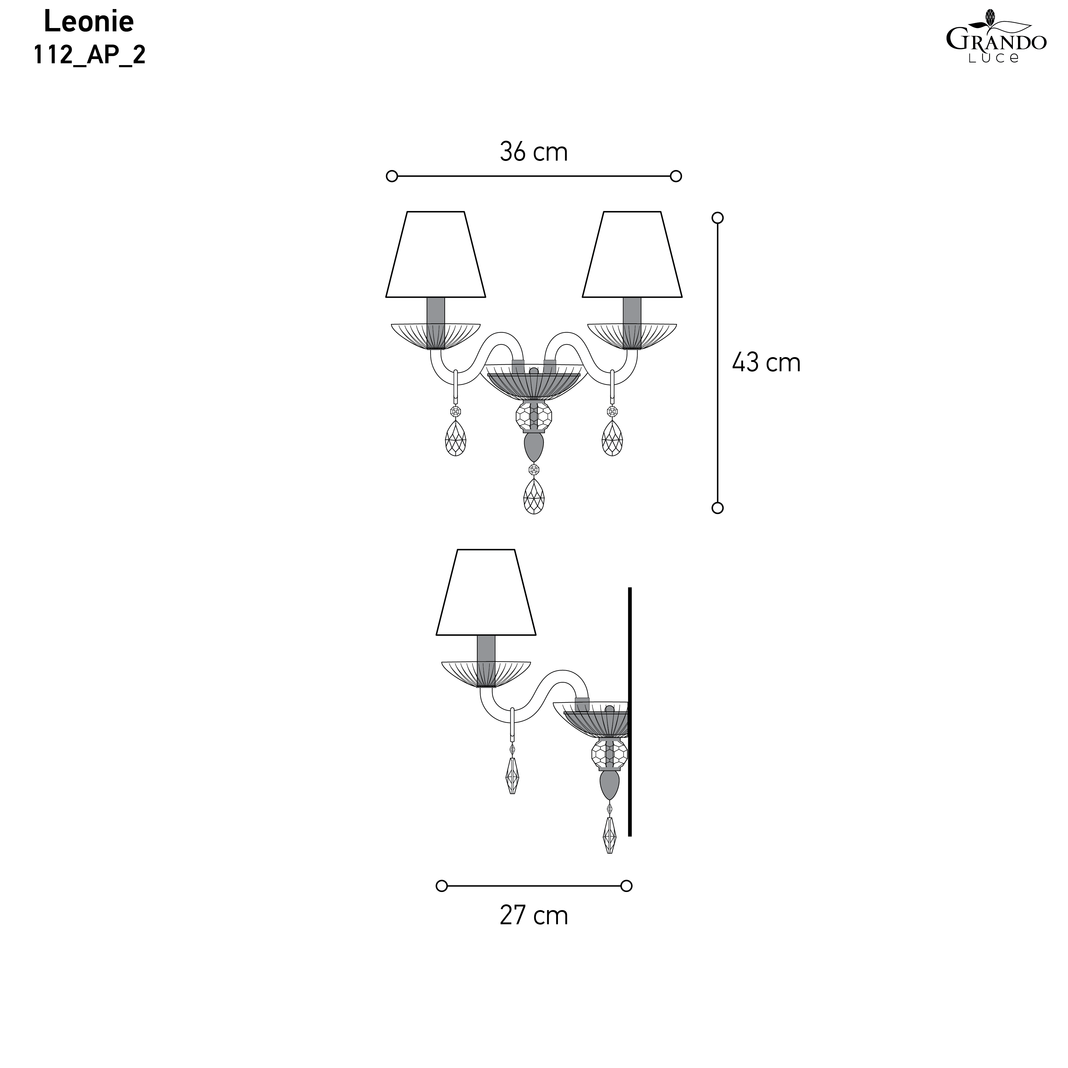 112/AP 2 Φωτιστικό Τοίχου - Απλίκα L.36 cm_H.43 cm_SP.27 cm 2 x 6W • E14