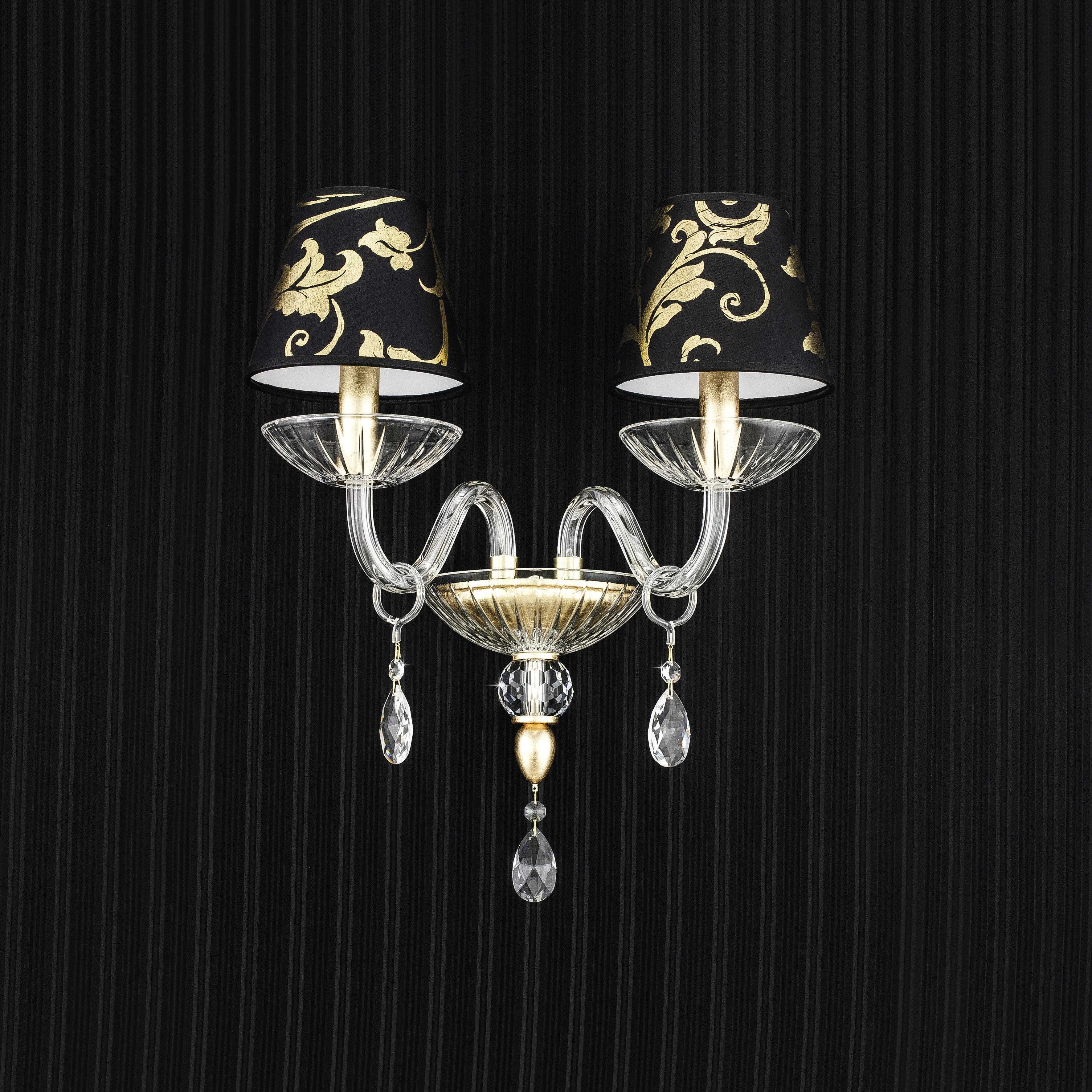 Leonie 112/AP 2 φύλλο χρυσού-κρυστάλλινη απλίκα τοίχου-pvc gold leaf black shade
