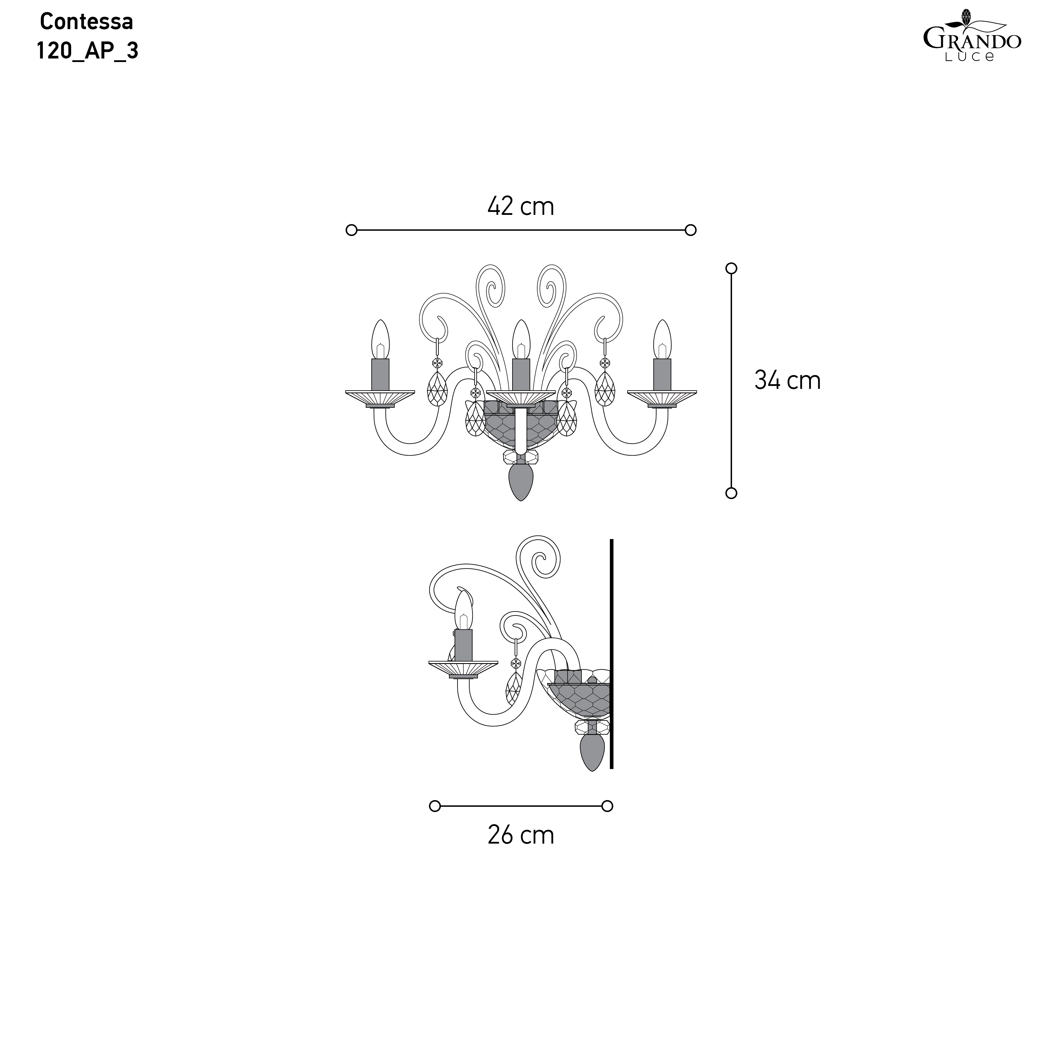 Contessa 120/AP 3 φύλλο χρυσού-κρυστάλλινη απλίκα τοίχου