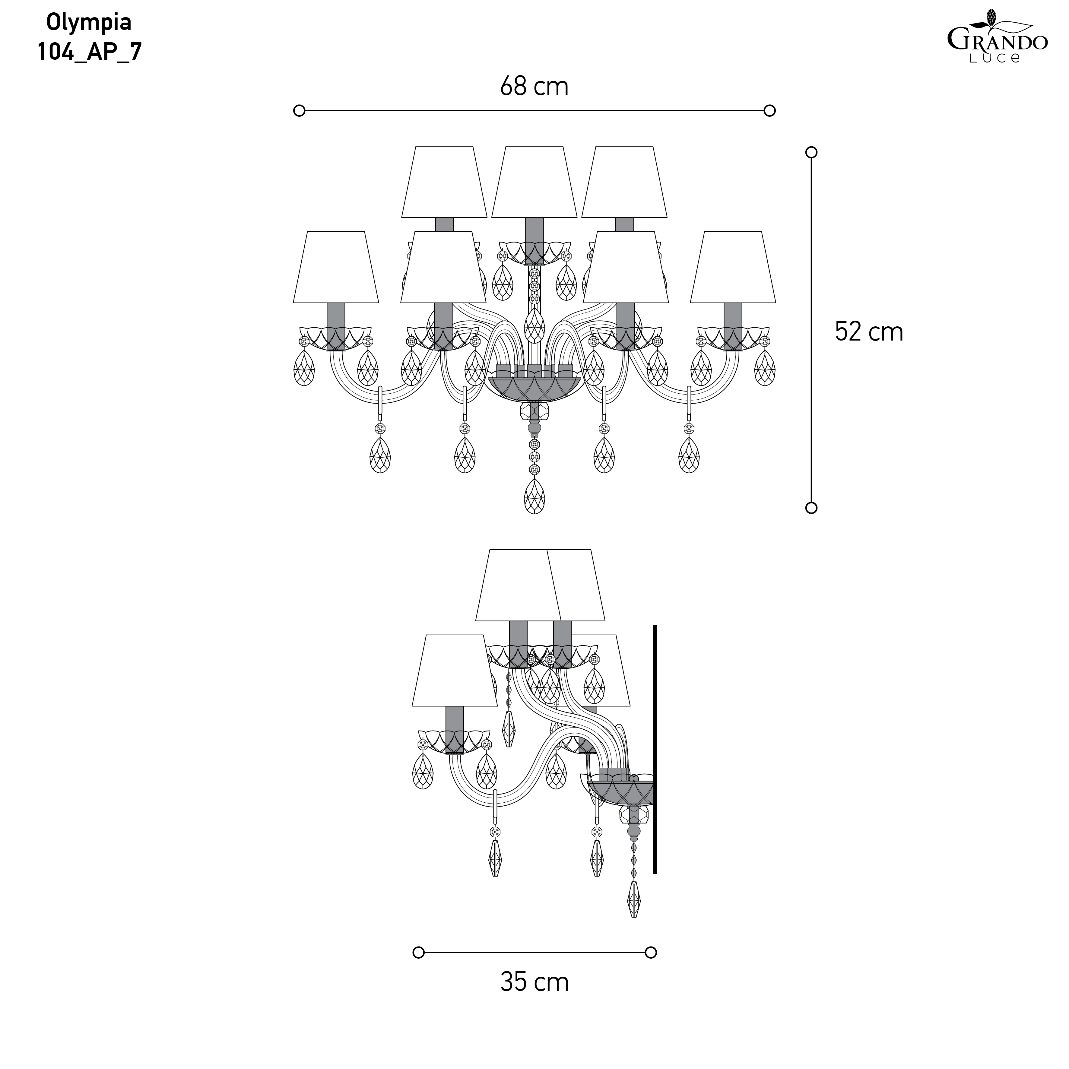 104/AP 7 | Φωτιστικό Τοίχου - Απλίκα | L.68 cm_ H.52 cm_SP.35 cm | 7 x 6W • E14 |